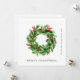 Couronne de Noël en cônes de pin et baies de houx pour carte de vacances.