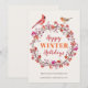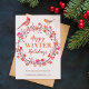 Carte de Noël hivernale traditionnelle inspirée de la rusticité pour famille ou entreprise, avec une couronne de baies de houx aquarelle rouge burgundy, violette, rose et orange, accompagnée de feuillage et de deux oiseaux - un cardinal et un rouge-gorge - et une typographie moderne contemporaine "Joyeux Noël d'hiver" . ++++++++++++ Personnalisez-la avec vos vœux et votre nom ! ++++++++++ Vous pouvez ajouter un texte personnel manuscrit et votre signature au verso.
