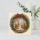 Cette carte de vacances de style rétro présente une couronne ornée d'un arc jaune or, de feuilles verts, de baies rouges et de deux adorables écureuils. Son design élégant mais rustique saisit à merveille l'essence de la période des fêtes de décembre et séduit ceux qui apprécient les illustrations artistiques. La carte offre également des options de personnalisation, vous permettant de la personnaliser avec votre nom de société, nom de famille ou nom individuel. En outre, vous pouvez inclure un poème de voeux personnalisé sur le dos, ce qui en fait un choix réfléchi pour diffuser la joie des vacances.