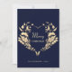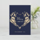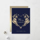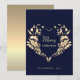 Moderne, élégante, simple, belle carte de vœux Joyeux Noël bleue, avec une couronne rustique en forme de cœur doré.