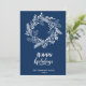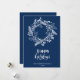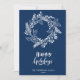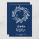 Envoyez des voeux et des salutations chaleureux à vos proches avec cette carte de vacances simple, minimaliste et festive avec un cadre de couronne de Noël de pignons assortis et de jolies fleurs poinsettia en arrière - plan blanc et bleu. Souhaitez-vous à tous un Joyeux Noël et Bonne Année!