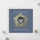 Conception moderne de fêtes de fin d'année bleue avec le texte 'Joyeuses Fêtes' et une couronne dorée chic sur fond bleu. Ajoutez simplement votre (vos) nom(s) de famille et votre photo. Le dos de la carte comporte un motif d'arbre de Noël doré sur fond blanc. Si vous avez besoin d'aide ou de produits assortis, veuillez nous contacter via notre magasin.