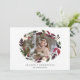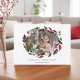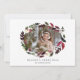 D'élégants cartes de fin de année botaniques présentent votre photo horizontale ou paysagère préférée entourée d'une couronne ovale de feuillage et de fleurs rustiques luxuriants. Personnalisez avec votre salutation personnalisée et les noms en-dessous ; avec "Bonnes Fêtes".