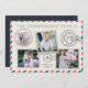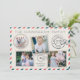 Le design unique des cartes de vacances prend son enseigne des cartes postales vintages, avec une bordure rayée bleue et rouge et des photos de style timbre. Customisez le front avec votre nom de famille, un court salut de vacances (montré avec "l'envoi de joie"), et quatre photos. Ajoutez trois photos supplémentaires à l'arrière, ainsi qu'un titre et une signature personnalisés, et des légendes personnalisées pour chaque photo. Une jolie carte de Noël "année en revue" qui est parfaite pour partager des souvenirs spéciaux ou des photos de voyage.