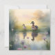 Carte de vœux blanche avec canard aquarelle mignon réfléchissant. Version de dos jaune.