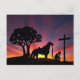Cowboy à la Croix Pâques PostCard chrétienne Art d'un cowboy et son cheval adoration à la croix de Jésus silhouetté par un coucher de soleil de Pâques.
