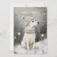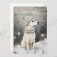 An adorable pup bundled in a knit hat and scarf sits patiently in the falling snow on this flat holiday card. The soft neutral tones and gentle snowfall create a peaceful, rustic charm. The front reads Happy Holidays, and the back includes space for your personal message and family name.