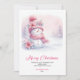 Celebrate the season with this cute watercolor pink coquette snowman kids Christmas card, set in a magical snowy forest. Editable text lets you personalize instantly, and the digital download provides an easy, fast, and festive holiday greeting.