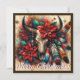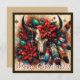 Cartes Pour Fêtes Annuelles Crâne de taureau de Noël Cow Poinsettias Plumes