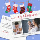 Carte postale moderne de Noël pour personnaliser avec 2 photos de famille, nom de famille et salutations de vacances personnalisées.