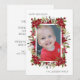 Créez votre propre carte de vœux avec votre photo préférée sur le devant dans un cadre de poinsettias de Noël rouges. Ajoutez votre propre message spécial au dos et terminez par le nom de votre famille, ou chaque nom de famille individuellement. Le texte « Joyeuses Fêtes » peut être changé en « Joyeux Noël », « Bonne Année » ou tout autre événement que vous célébrez.