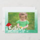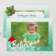 Jolie carte de Noël verte sauge avec pin et pommes de pin pour croire. Ajoutez simplement la photo de votre famille ou de votre enfant dans la zone de personnalisation.