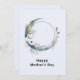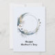 Une carte de Fête des Mères plate avec une illustration mystique. Un croissant de lune bleu foncé avec un contour de cercle mince élégant et des fleurs blanches qui fleurissent le long de ses bords.