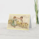 Une image de carte vintage de Pâques comporte deux petites filles tenant des mains avec leurs bras tenus en haut dans un jeu de pont de Londres des enfants. Une ligne de fichier unique des poussins jaunes croise sous leurs bras. L'avant de la carte indique que "lumineux soyez votre Pâques" et le message à l'intérieur de la carte est : "Mai l'esprit de Pâques et la joie du printemps remplissent votre vie avec bonheur."