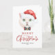 Joyeux Noël! Envoyez des voeux de vacances à votre famille et à vos amis avec une carte à plat de Noël sur le thème du chat. Il présente une illustration aquarelle d'un mignon chat à air court britannique blanc avec chapeau de Père Noël et cravate arc tartan. Les textes sont entièrement modifiables. Personnalisez en ajoutant un message d'accueil, des noms et des messages. Cette carte de Noël pour chat est parfaite pour les amoureux de les chats et les propriétaires d'animaux.