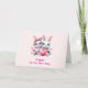 Valentine's Day card with an illustration featuring 2 white furry bunnies sharing a big PINK heart. The girl bunny is wearing a cute bow on her head and heart-shaped glasses. The boy bunny is wearing an adorable little suit with a tie.