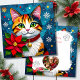A Christmas card that you can personalize with your own holiday message. On the front is a cute festive Calico cat. You can upload one pictures that will fit into the heart on the back in the personalize area.