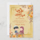 A heartwarming and cute illustration of a young Muslim boy and girl sharing a meal. Surrounded by warm autumn-toned flowers, this card is perfect for children, family members, or students during the holiday season.