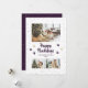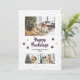 Cute purple photo Christmas card featuring three photos, snow and paw prints on the front and a snowy background at the back. Easily personalize this cute photo Christmas card with your photos, family name and the year.