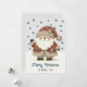 Cute Santa Clause Snowflakes Drawing Christmas Holiday Card. A cozy, Boho-inspired Christmas card featuring cute drawing of a Santa Claus on a snowy hill. Soft earthy tones such as terracotta, cream, and green. Delicate snowflakes are scattered across the card, adding a touch of winter magic. The text 'Merry Christmas' is in elegant script. The overall aesthetic exudes a warm, rustic, and modern Bohemian feel, perfect for a stylish yet festive holiday look. Add your name and year.