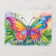 Cette carte postale créative et unique illustre un papillon flottant coloré. Ce salut d'anniversaire serait vraiment merveilleux pour les amis, la famille et les collègues.