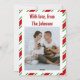 Drôle chien jeu de cartes de Noël, avec Yorkie mignonne en casquette Père Noël, en haut d'une couronne de Noël. Ajoutez votre photo à l'arrière. Tout le texte est modifiable. Vous pouvez supprimer le cadre rayé du côté arrière.