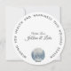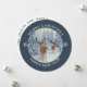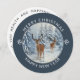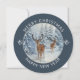 Carte de Noël unique avec une scène de forêt d'hiver blanche avec cerf avec Joyeux Noël & Joyeux Nouvel An design sur une carte RONDE en forme unique! Modifiez votre nom au verso et l'année en cours au recto.