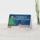 Dachshund à travers la neige .. des cartes de Noël à thème des vacances amusantes de Ricaso - avec un mignon dachshund portant un foulard et un casquette bobble à côté d'un sapin de Noël avec des cadeaux sous lui, et sur un arrière - plan d'un ciel bleu foncé avec la neige tombant
