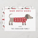 Mignonne et adorable Dachshund Sausage ou Wiener chien dans un pull tricoté rouge et blanc festif. Modifiez les noms et le message d'accueil pour personnaliser. Art original de Nic Squirrell.