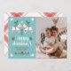 L'art populaire a inspiré la carte de Noël avec des chevaux de dala dessinés à la main en blanc, bleu clair, vert et rouge. Joyeux Noël est écrit en dessous. Le design est encadré par un simple cadre dessiné à la main avec des coeurs dans les coins. Personnalisez avec une photo de votre famille !