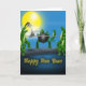Bague dans la nouvelle année dans le plaisir et la célébration sans arrêt! Danser des tortues limbo avec la lune jaune élevée et des cocotiers en toile de fond fait un plaisir cool tropique thème heureux carte de nouvelle année extra spécial.