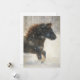 Une illustration aquarelle saisissante d'un cheval galopant à travers une neige qui tombe doucement. La crinière riche et fluide et le mouvement dynamique capturent l'esprit de la beauté sauvage de l'hiver. Parfait comme carte de Noël, salutation saisonnière ou note d'inspiration tout au long de l'année pour tout amateur de chevaux ou amoureux de la nature. Intérieur vierge et attendant votre message personnel.