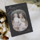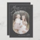 Carte de vacances photo de Noël de famille Boho numérique gris foncé. Personnalisez l'avant de la carte avec une photo, votre nom de famille et l'année. Personnalisez le dos avec un accueil de vacances ou des nouvelles de famille en option, et votre nom de famille.