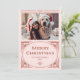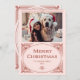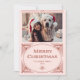 Ces élégantes cartes photo de Noël sont décorées dans un style moderne, dans un style art déco classique. Un cadre géométrique rouge orné et ornementé décorent un arrière - plan rose vif avec votre photo personnelle préférée pour un look de vacances spectaculaire et vintage des années 1920. La typographie classique dit "Joyeux Noël". Il y a de la place pour votre message personnel sur le dos.