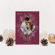 Une carte de vacances moderne et élégante qui encadre votre photo verticale ou portrait dans un cadre en diamant magnifiquement détaillé avec des feuilles saints, des baies et des feuilles d'hiver sur un riche arrière - plan de prune bordeaux. "PEACE" apparaît en haut à gauche, avec votre nom de famille en bas. L'année est dissimulée élégamment dans le cadre botanique blanc finement détaillé. Une nature délicate et raffinée inspiré choix pour vos cartes de Noël 2021.