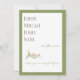 Design moderne. Grands prénoms. Photo sur le dos. Bordure verte de mousse. Feuillage de pin et d'or.