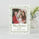 Diffusez la joie festive avec cette carte de Noël personnalisée avec photo, à l'illustration fantaisiste et dessinée à la main pour les fêtes. Ornée d'un design ludique vert et blanc mettant en vedette des sapins de Noël charmants, un bonhomme de neige joyeux, des cannes de bonbon, un adorable nœud coquet, le Père Noël et des accents de pain d'épices délicieux, cette carte capture la magie et la chaleur de la saison. Parfaite pour envoyer des vœux de Noël sincères, elle ajoute une touche de charme de Noël cosy et dessiné à la main à chaque message.