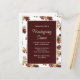Elégante carte postale d'invitation à dîner Friendsgiving, avec un feuillage d'automne et un design de script sur un arrière - plan bordeaux rouge. Avec des lettres personnalisables en blanc, vous pouvez ajouter vos propres informations. Une carte rustique pour planifier votre fête de Thanksgiving avec des amis.