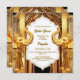 Un beau collier en bronze luxueux, éclatant et luxueux qui est enroulé en haut forme une bordure autour d'une incrustation blanche sur laquelle apparaissent des modèles de texte personnalisés. De part et d'autre des rideaux sont des bandes verticales dorées et devant celles-ci sont des éléphants majestueux en faux or portant des perles, des casquettes et des motifs ornés de henné. Ils ont leurs troncs élevés vers le script de calligraphie et les polices de caractères. Le dos a le même design et des modèles supplémentaires pour des informations supplémentaires que vous pouvez vouloir que vos invités et votre famille connaissent. Si ce n'est pas nécessaire, supprimer le libellé pour les laisser en blanc. Ce design élégant, élégant et traditionnel est idéal pour toute cérémonie hindi ou hindou. Gâtez la mariée d'être avec cette invitation de carré haut de gamme, luxueux et sur mesure d'origine asiatique