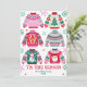 Ce chandail moche propose 6 chandails moches avec rennes, arbres de Noël, Père Noël un bonhomme de neige et plus dans une palette de couleurs rouge, vert et rose. Le texte dit "Tis The Season" avec votre nom de famille et votre année, qui peuvent tous être customisés. Sur le dos de la carte se trouve un affreux tricot tricoté et un cadre de style polaroïde pour votre photo de famille. Voir l'ensemble de la collection correspondante. Toutes les oeuvres sont illustrées à la main par Kaitlyn Thomas et protégées par copyright.