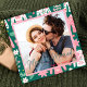 La carte postale Moche Sweater Christmas 1st Year Married a une ambiance audacieuse mais élégante, mêlant un thème rétro et botanique avec un thème rose pastel et vert forêt. L'arrière - plan est un vert de forêt riche et profond, ce qui crée un contraste saisissant pour les éléments plus légers et plus ludiques sur le dessus.
