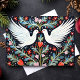 Envoyez paix et amour cette saison de vacances avec cette carte magnifiquement conçue avec deux colombes élégantes entourées de motifs floraux complexes dans un style d'art populaire. Parfait pour ceux qui apprécient les modèles de vacances traditionnels mais artistiques, cette carte apporte chaleur et joie à vos voeux de Noël.