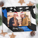 Envoyez Joyeux voeux de Noël à vos amis et à votre famille avec cette carte de Noël de la police de Ligne Bleue Mince - Drapeau américain aux couleurs du drapeau de la police, noir et bleu moderne. Personnalisez avec votre photo et votre nom de famille préférés. DROIT D'AUTEUR © 2020 Judy Burrows, Black Dog Art - Tous droits réservés. Police Noël mince Ligne bleue American Flag Carte postale