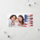 Drapeau américain et joli script écrit devant le dégradé blanc. Salutation classique pour les fêtes américaines pour les patriotes. Belle carte de vacances patriotique pour Noël. Le drapeau américain est sur le fond, Fait dans le traditionnel rouge, blanc et bleu avec l'ombre blanche. Ajoutez votre emplacement et votre nom ainsi que votre photo. Fait une belle carte photo de Noël pour n'importe qui, mais est particulièrement bien adapté pour ceux qui sont stationnés dans l'armée.