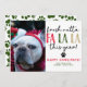 Faites ressortir vos voeux de vacances avec cette Funny Chien Photo de Noël Photo personnalisée Carte de vacances humoristique. Avec une seule et adorable photo de votre animal de compagnie bien-aimé, cette carte apporte une touche ludique aux cartes de Noël familiales traditionnelles. Que ce soit le premier Noël de votre chien ou sa dernière pose festive, cette mignonne carte de Noël en une photo laisse éclater sa personnalité, ajoutant un peu d’humour à vos salutations saisonnières. Parfait pour ceux qui aiment célébrer avec un rire, ce carte photo de vacances amusant est idéal pour les propriétaires d'animaux de compagnie, les amoureux des animaux ou toute personne qui aime une touche légère. Avec un message festif de "Happy Howlidays" ou de la cheeky "Fresh Outta Fa La", cette carte offre un point de vue charmant et humoristique sur les vacances. Son design ludique est sûr d'apporter des sourires à tous sur votre liste, ce qui en fait un choix mémorable pour vos cartes photos de Noël. Conçu pour les amoureux des animaux de compagnie et les défenseurs des animaux secourus, cette carte de Noël photo pour animaux de compagnie vous permet de célébrer la place spéciale de votre chien dans votre famille. Que vous honoriez un animal de compagnie secourt ou que vous fassiez la commémoration du premier Noël de votre chien, cette carte est un moyen parfait de partager la joie de la saison tout en mettant en valeur la gentillesse et le charme de votre ami furieux.