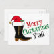 Joyeux Noël, tous. Une carte postale de vacances amusante pour un cowboy texan qui parle avec l'argot du sud. Une botte de cowboy surmontée d'un casquette du Père Noël.
