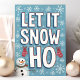Apportez le rire à la saison des fêtes avec cette carte de Noël impertinente présentant la phrase "Laissez-le Neiger Ho" en lettres grasses et ludiques. Complète avec un bonhomme de neige souriant, des mitaines et une pluie de flocons de neige, cette carte humoristique est parfaite pour les amis, les collègues ou toute personne avec un sens de l'humour amusant. Répandez la joie et le rire avec ce vœu de vacances unique qui va certainement se démarquer !