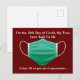 Le 12ème jour de Covid, mon véritable amour m'a dit... 2 jours avant de sortir de quarantaine. Un peu d'humour coronavirus cette saison des fêtes pour vous aider à traverser cette pandémie et ce mode de vie de distanciation sociale sans fin. Carte de vœux de Noël Covid en rouge avec un masque médical vert.