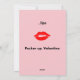 Montre le côté arrière d'un chat de dessin animé noir, avec la tête du chat tournée pour vous regarder. Le texte dit : "Cette Saint Valentin, tu peux m'embrasser les lèvres. Pucker up, Valentine". Une paire de lèvres rouges s'affiche. La couleur arrière - plan est rose. Drôle, mignon, sexy, design romantique pour votre Saint Valentin en Février.