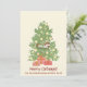 Diffusez une joie parfaitement festive avec les Funny Merry Catnaps ! Carte de vacances de Noël avec un chat sur un sapin de Noël. Ce design adorable présente un chat orange somnolant paisiblement au sommet d'un sapin de Noël décoré, orné de décorations dorées et flanqué de deux cadeaux emballés en dessous. Sous la scène cosy, le texte indique "Merry Catnaps!", avec une ligne personnalisable pour ajouter le nom de votre famille et même le nom de votre chat pour un côté personnel. Le verso de la carte offre un espace pour une photo de famille, ce qui en fait un souvenir doux pour les amis et les proches. Un choix fantaisiste pour les amoureux des chats et tous ceux qui aiment un peu d'humour pendant les fêtes.
